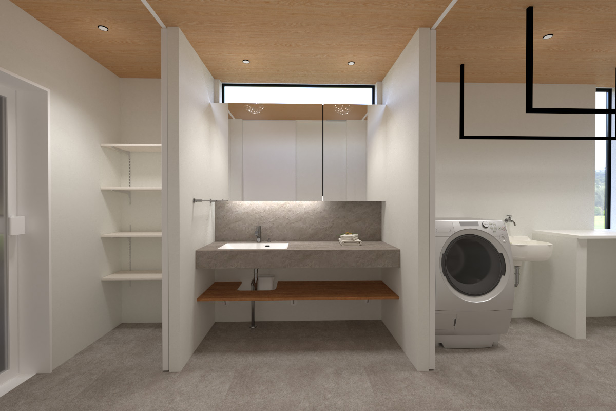 素材それぞれの質感や重厚感を活かしながらも、それらをシンプルに統一感あるデザインにまとめました。使い勝手良い水回り動線も見どころの一つなので、ぜひご来場ください。